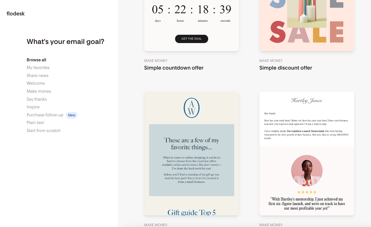 Flodesk email marketing users who just want to sell the occasional product/service/masterclass and this isn’t a core part of their business